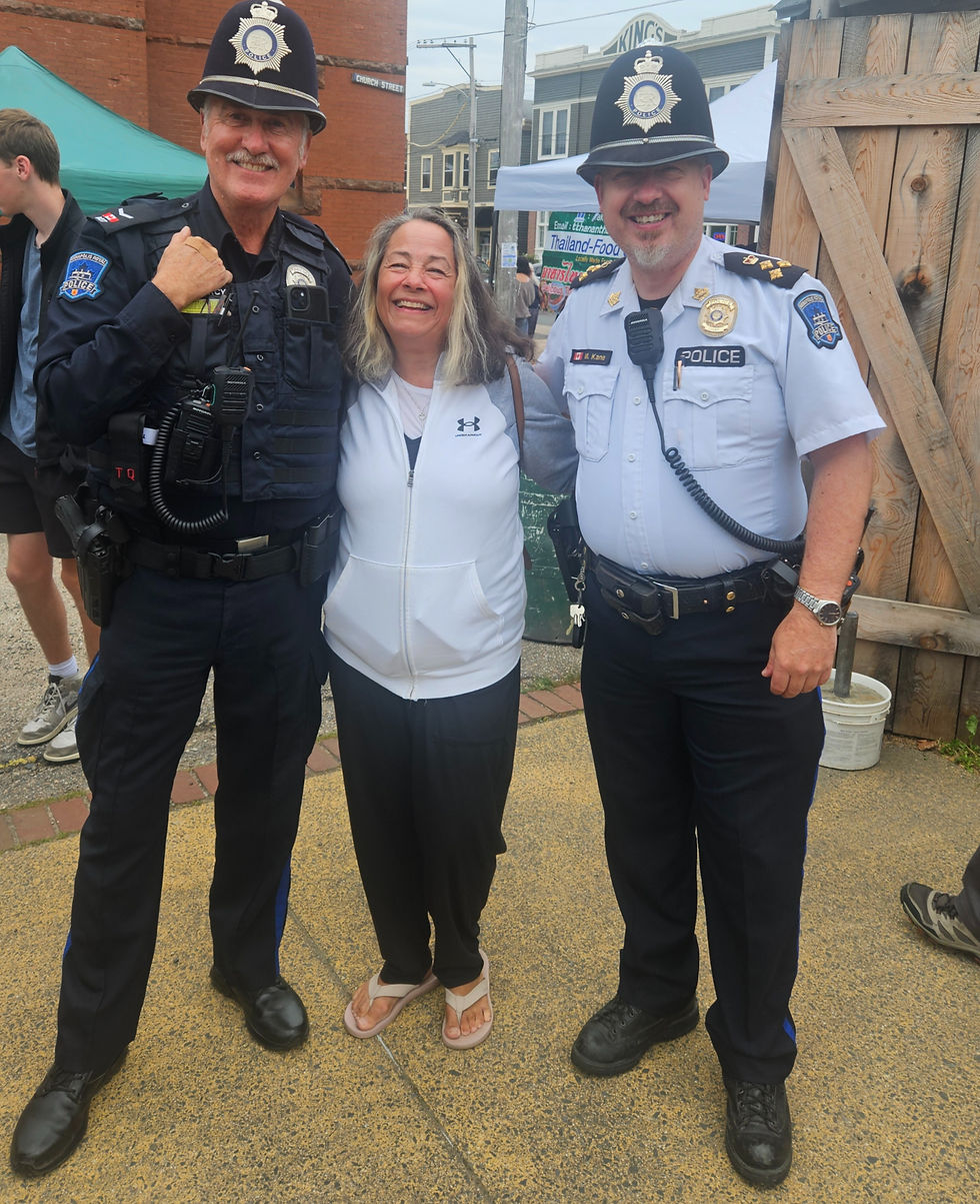 We also met a few characters at the weekend market — the kind of place where you go in for a look and come out with things you never planned on buying. We picked up some homemade gin, grabbed a bottle of really good maple syrup to take home, and chatted with a couple of local vendors who seemed to know everyone within a 20‑kilometre radius. Even the cops working the market were in a good mood. One of them jokingly flirted with my wife, something along the lines of, “Do you want the cuffs?” which got a big laugh from everyone around. Just another Maritime moment — friendly, harmless, and full of personality.